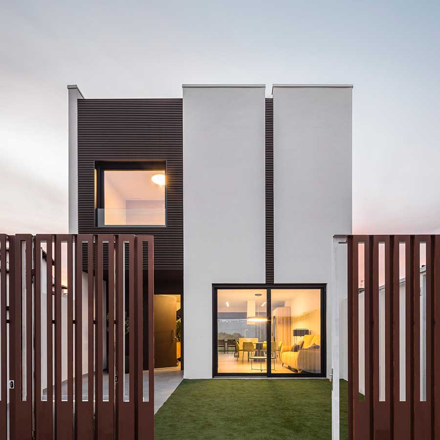 Modelo de vivienda modular prefabricada para parcelas entre medianeras