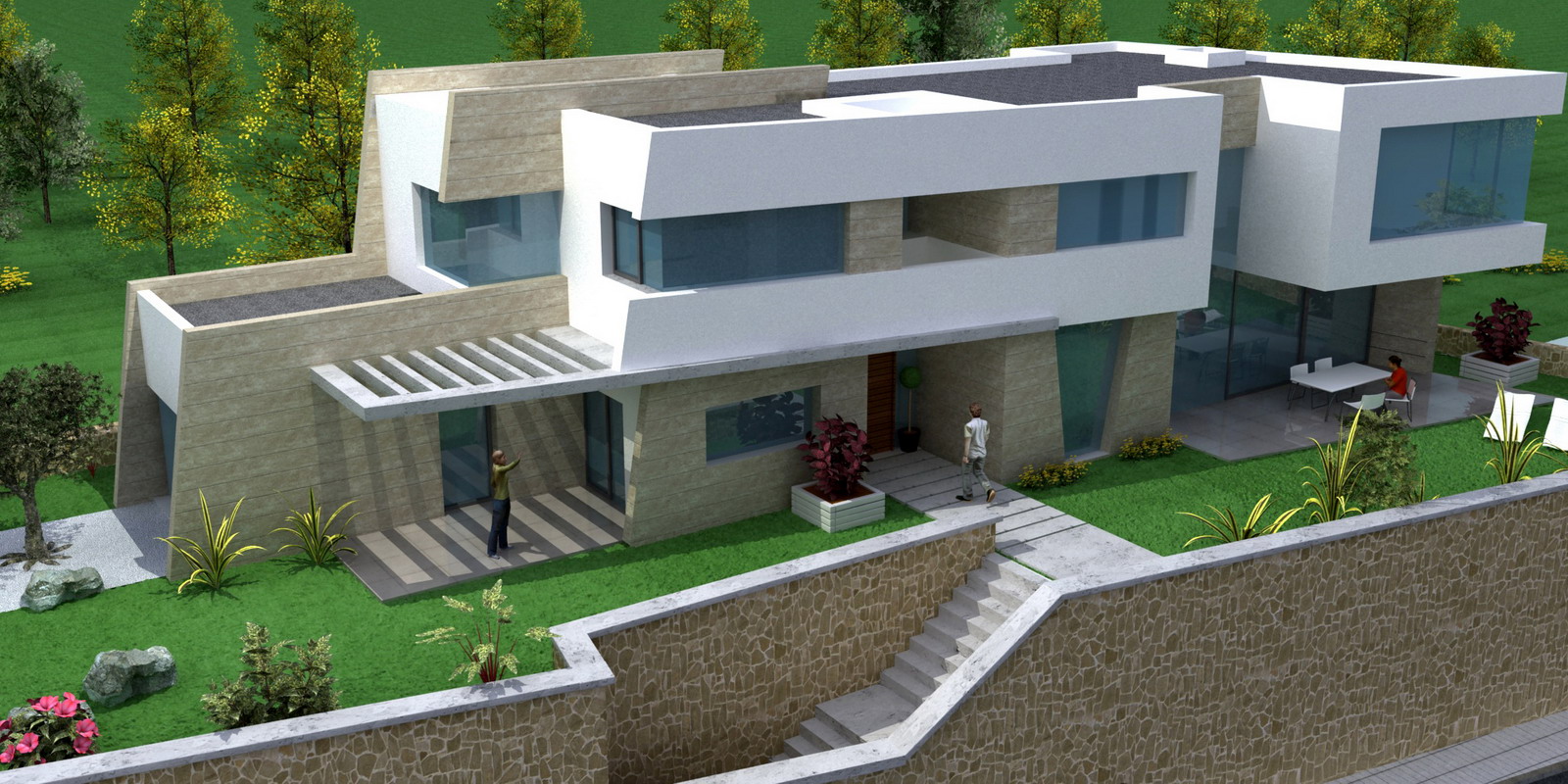 Vivienda unifamiliar aislada en dos alturas en terreno escarpado
